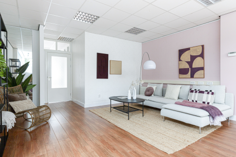 *Dit sfeervolle huis is afgewerkt met strakke wanden en plafonds. Op de vloer ligt licht "eiken" laminaat.